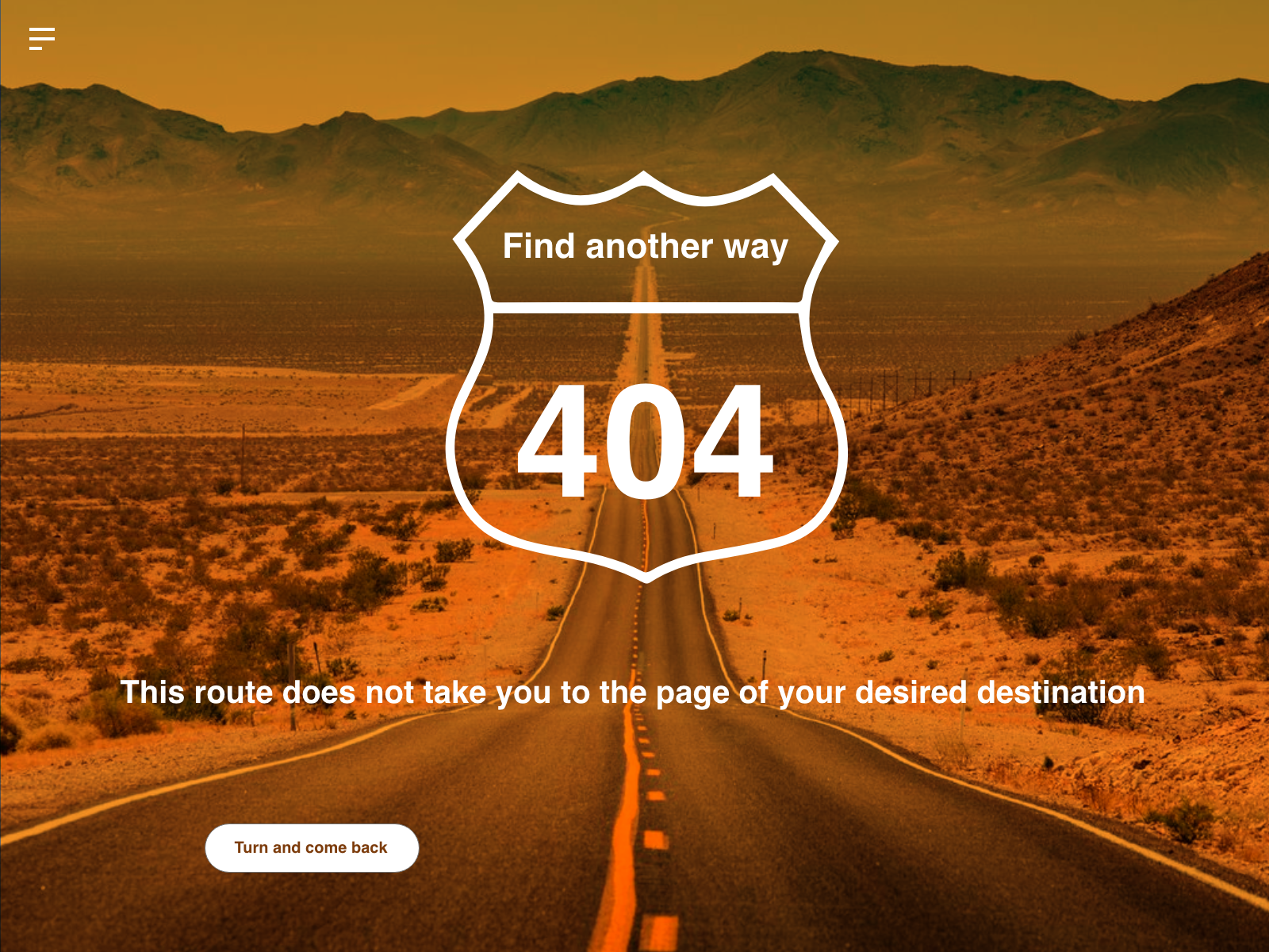 Design of the typical 404 error page, taking the route as a concept. The return button, on the right side of the route in the corresponding countries.