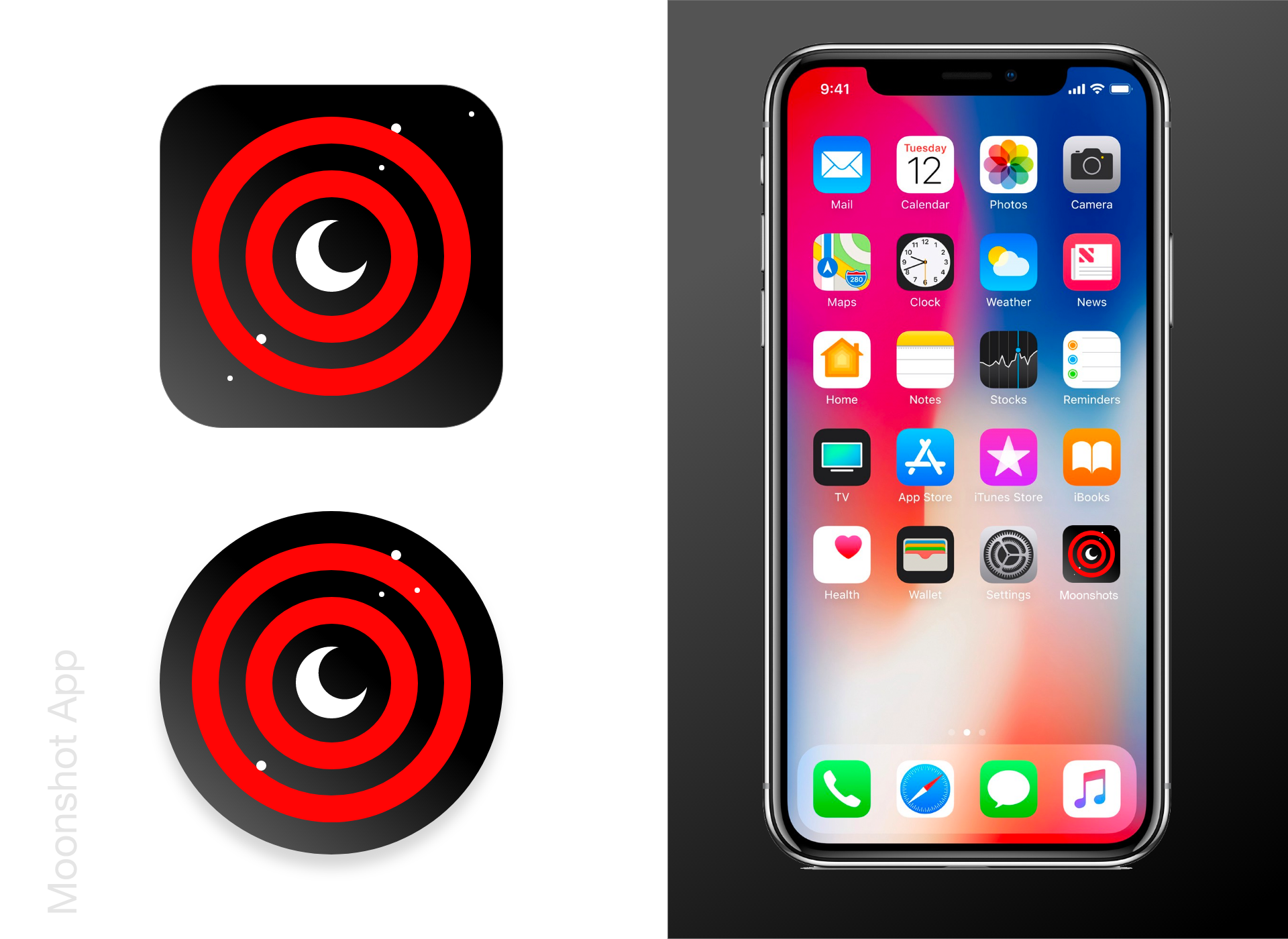 An application that integrates the Moonshot Thinking concept, where users experience and share ideas, losing their fear of failure. Icon design for iPhone and Android.