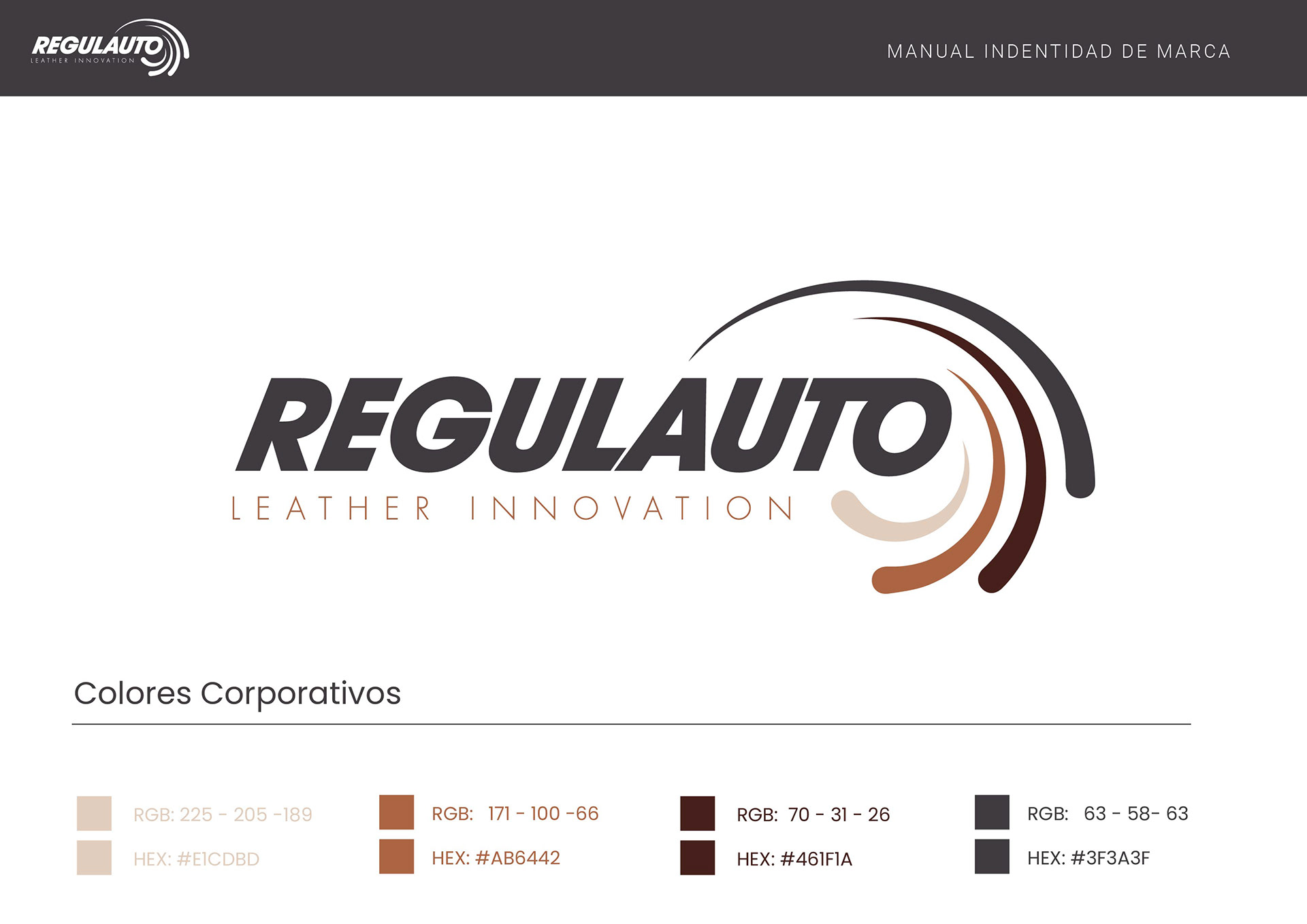 Diseño de logotipo para Regulauto. Empresa de distribución de productos de Piel para coches.