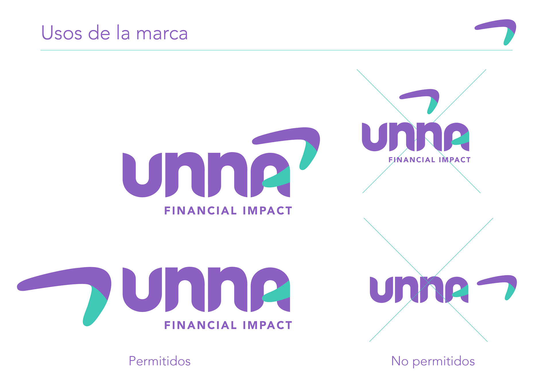 Diseño de nueva identidad de Marca. Unna. Se pensó en un Boomerang como concepto de retorno, ya que la instrucción en finanzas a personas de la marca es una inversión a futuro con retorno de lo invertido.